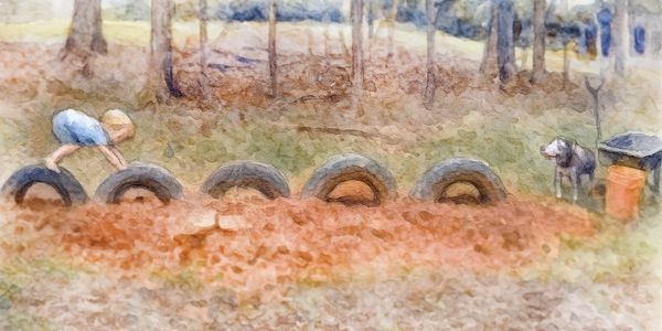 Our classroom has wooden forts, a tire snake (so fun for balancing!), a sand pit, slides, swings, climbing dome, a beautiful circle space, log benches and seats, and a story-tree. In the works: extensive mud kitchens, a rustic outdoor classroom (large, roofed βlean-toβ shelter), a library box, crafts areas, childrenβs garden for vegetables and herbsβ¦ and more!